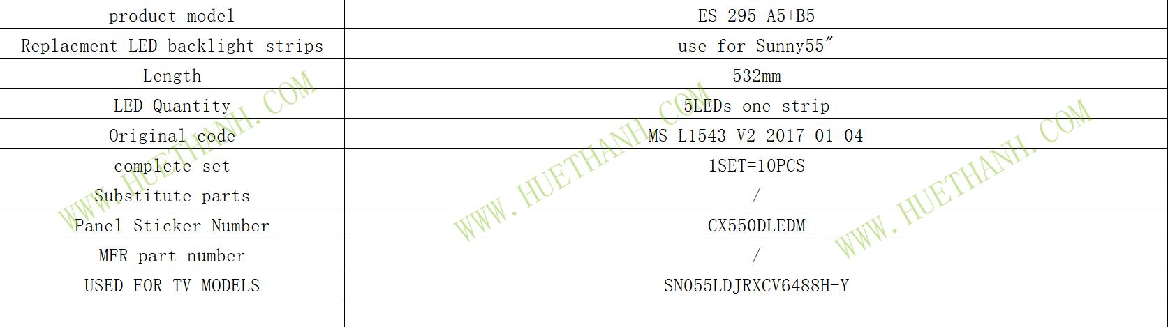 Từ khóa: BACKLIGHT bar use for Sunny 55" 5LEDs MS-L1543 V2 2017-01-04 led backlight strips