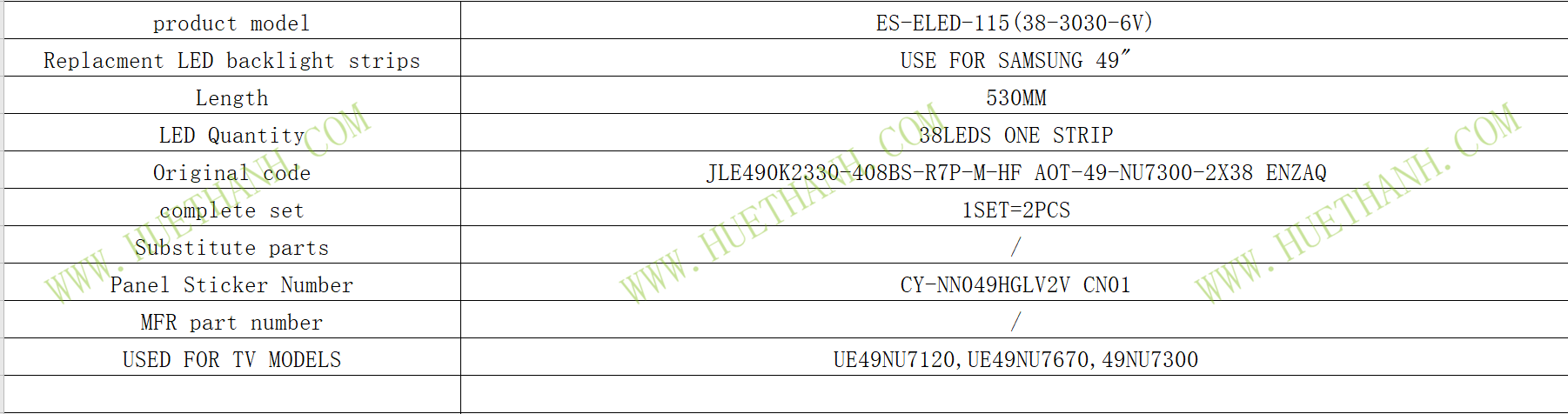 ELED/EDGE TV Backlight USE FOR SAMSUNG 49″38LEDS JLE490K2330-408BS-R7P-M-HF AOT-49-NU7300-2X38 ENZAQ LED STRIPS