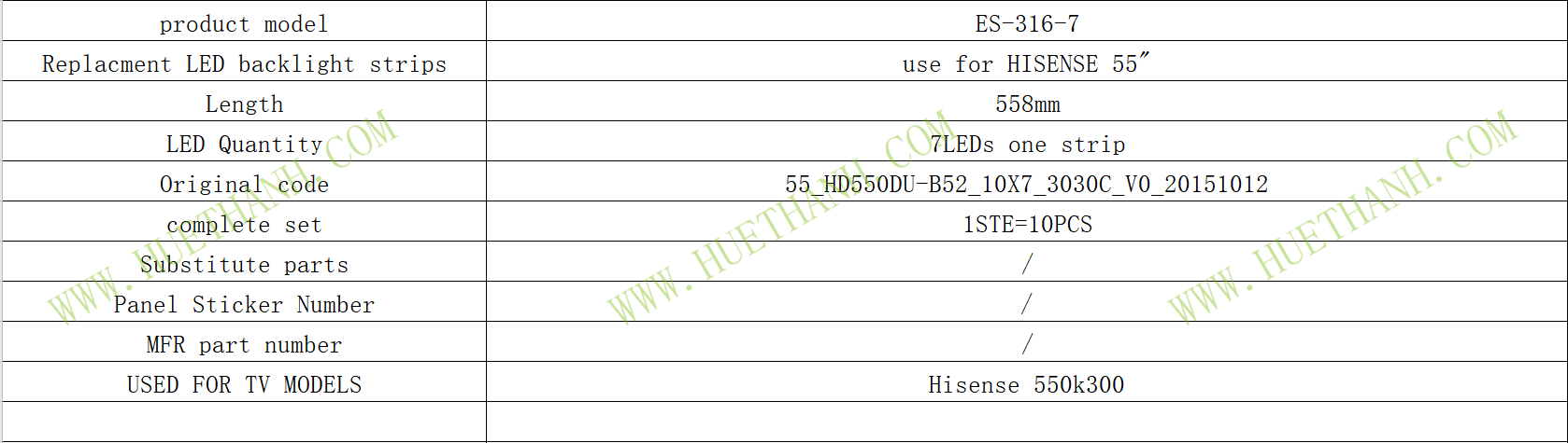 Hãy là người đầu tiên nhận xét “LED TV Backlight use for HISENSE 55″ 7LEDs 55_HD550DU-B52_10X7_3030C_V0_20151012 LED STRIPS”