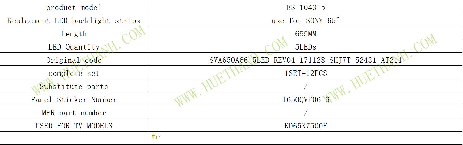Hãy là người đầu tiên nhận xét “LED TV BACKLIGHT use for SONY 65″ SVA650A66_5LED_REV04_171128 SHJ7T 52431 AT211 LED STRIPS”